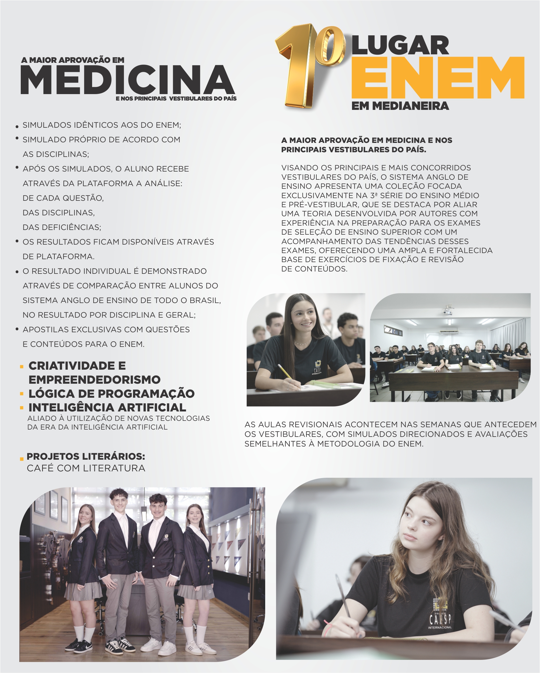 Nós adotamos o Sistema Anglo de Ensino que fornece um material que possibilita o desenvolvimento da autonomia de aprendizagem, sem abrir mão da sistematização.