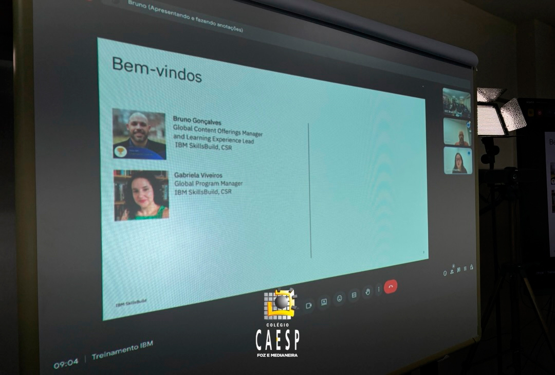 O treinamento e apresentação da plataforma foram conduzidos por Bruno Gonçalves, Gerente Global de Ofertas de Conteúdo, e pela Gerente Global de Programa, Gabriela Viveiros, que detalharam os métodos, os conteúdos e as possibilidades do IBM SkillsBuild, uma plataforma robusta, atualizada e alinhada às demandas do mercado.