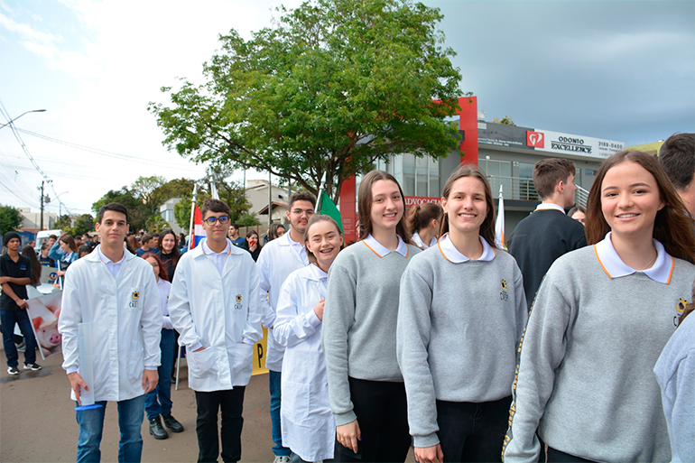 A participação dos alunos e professores do Colégio Internacional Caesp Medianeira, desde a Educação Infantil ao Ensino Médio, encantou a população medianeirense, no Desfile Cívico deste Dia 7 de Setembro.