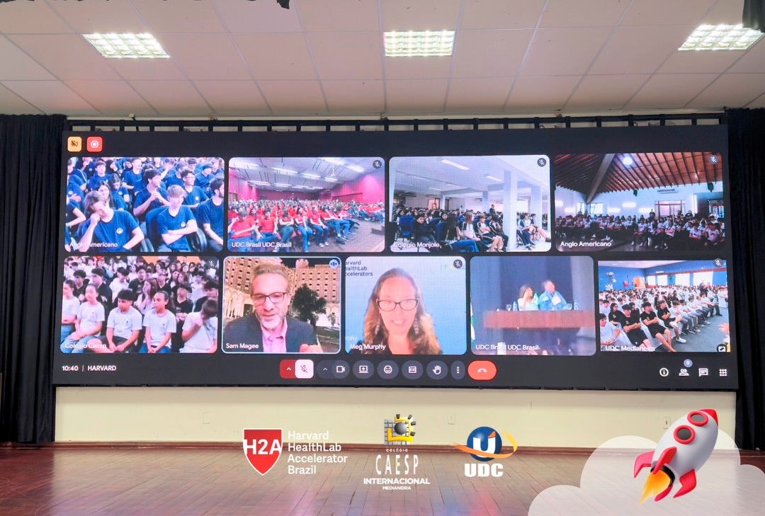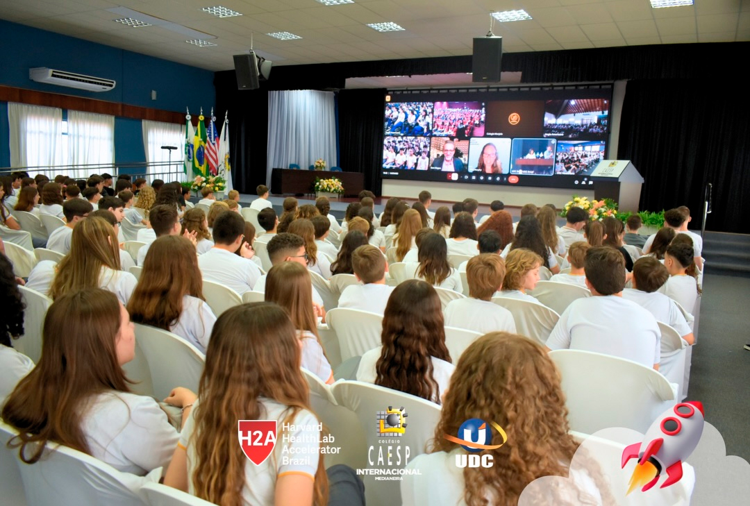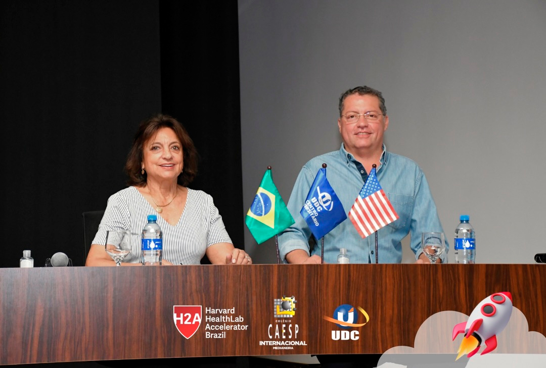 A abertura oficial contou com o Diretor Geral do Colégio CAESP e Pró-Reitor da UDC Prof. Dr. Fábio Prado, e com a presidente do Grupo UDC, Profª Rosicler Hauagge do Prado. A participação do Prof. Sam Magee, diretor do programa Harvard HealthLab Accelerator, e de Meg Murphy, Redatora Sênior de Comunicações Estratégicas da Harvard T.H. Chan School of Public Health, reforçou o impacto da grande parceria do Grupo UDC e com Programa H2A, que permite que nossos alunos desenvolvam ideias com alcance global.