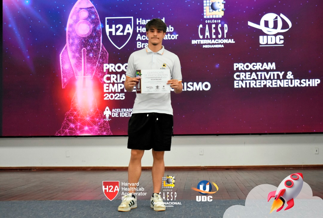 O teatro do Colégio CAESP Internacional recebeu nossos estudantes para entrega dos certificados do 3º PitchDay e para celebrar um ano marcado por projetos inovadores que ultrapassam fronteiras.