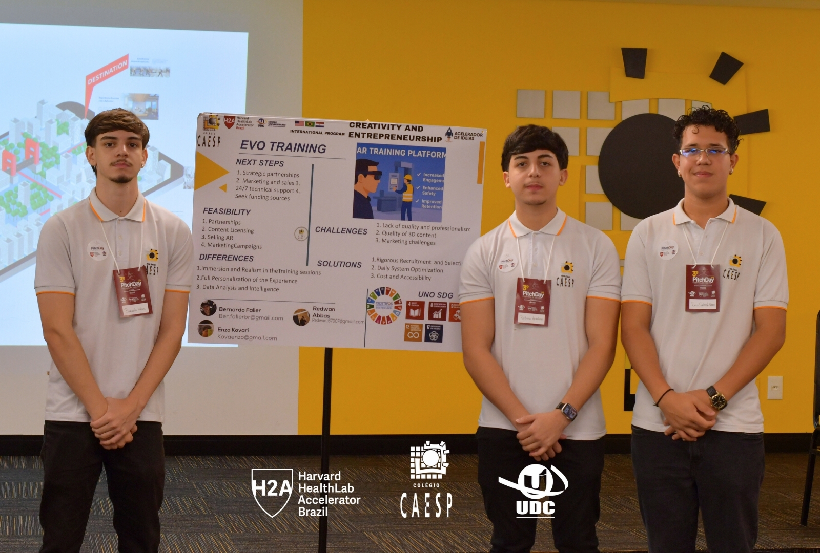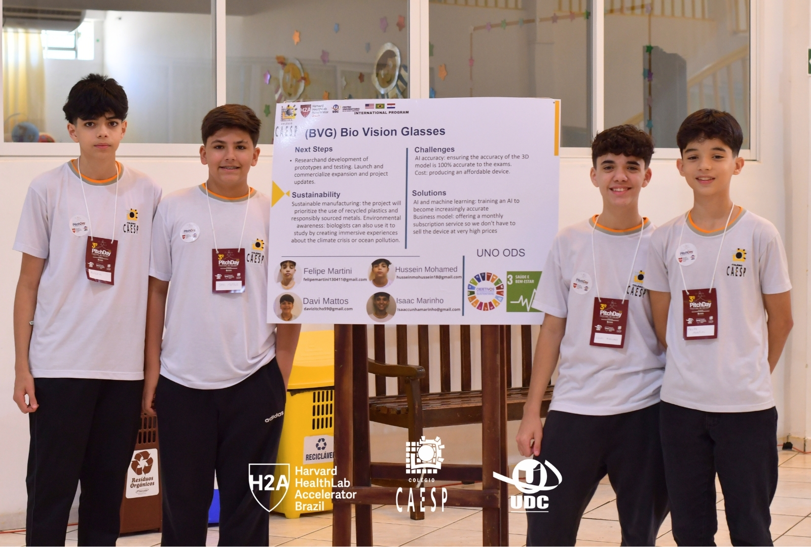 Em mais uma edição do PitchDay UDC e Harvard HealthLab Accelerator o Colégio CAESP se mostrou um verdadeiro laboratório de inovação. Os alunos apresentaram projetos que abordaram desde soluções ambientais até ideias tecnológicas voltadas à comunidade.