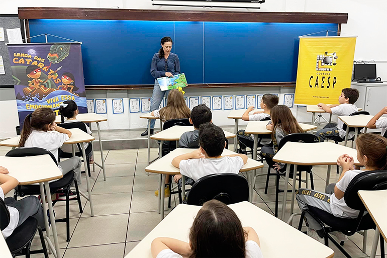 Alunos do Ensino Fundamental 1, receberam a visita da escritora Melissa Ferreira Ribas Vieira, que juntamente com o escritor André Luiz Ribas Vieira escreveram o livro infantil “A lenda das Cataratas”.