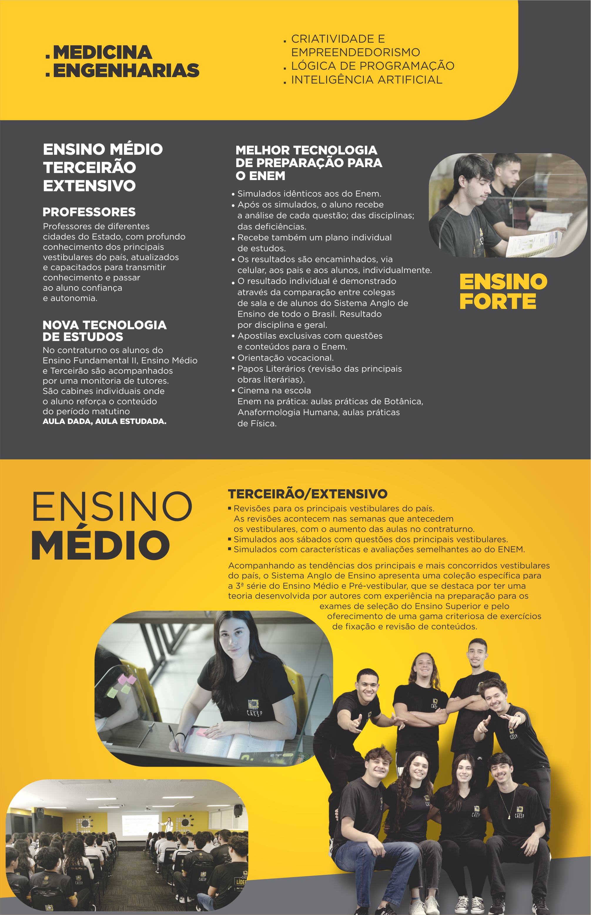 Revisões para os principais vestibulares do país. As revisões acontecem nas semanas que antecedem os vestibulares, com o aumento das aulas no contraturno.